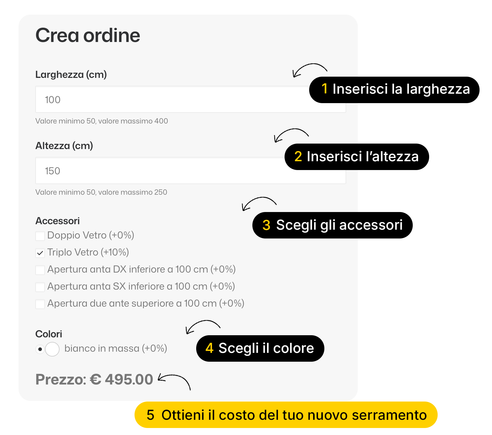 Una volta prese le misure, inseriscile nel nostro preventivatore online: