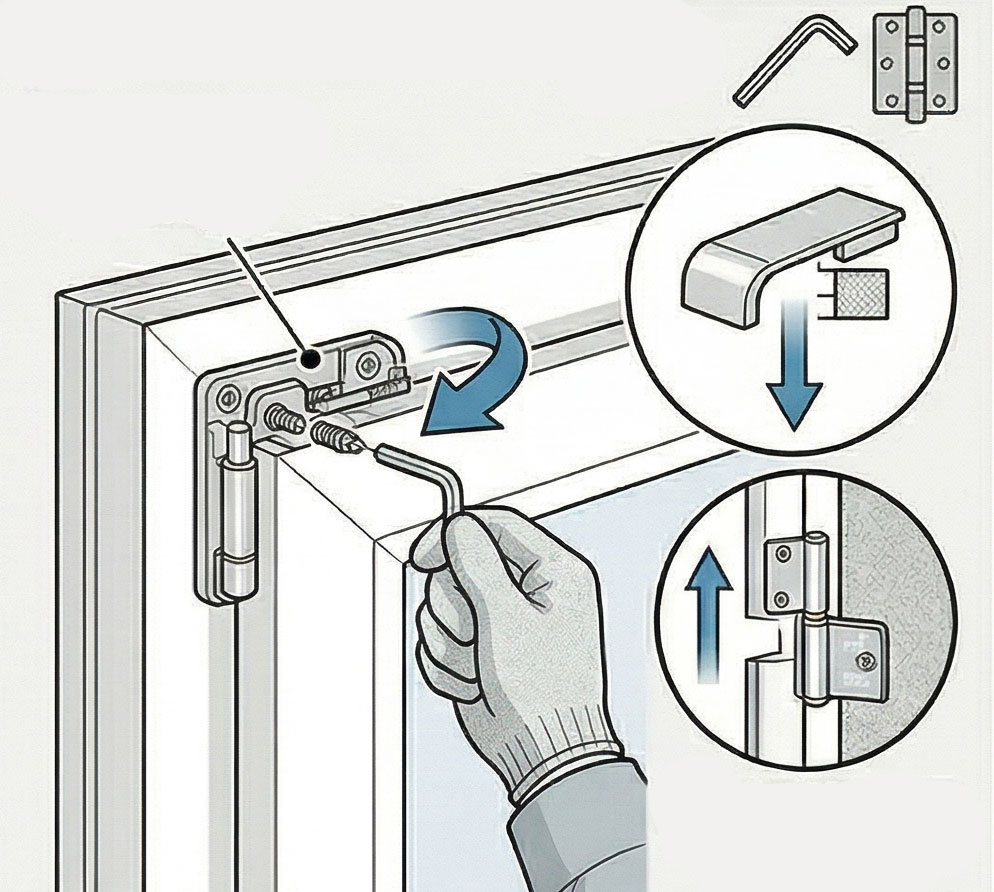 Per i serramenti più datati, con cerniere tradizionali a vista, la procedura è la seguente: